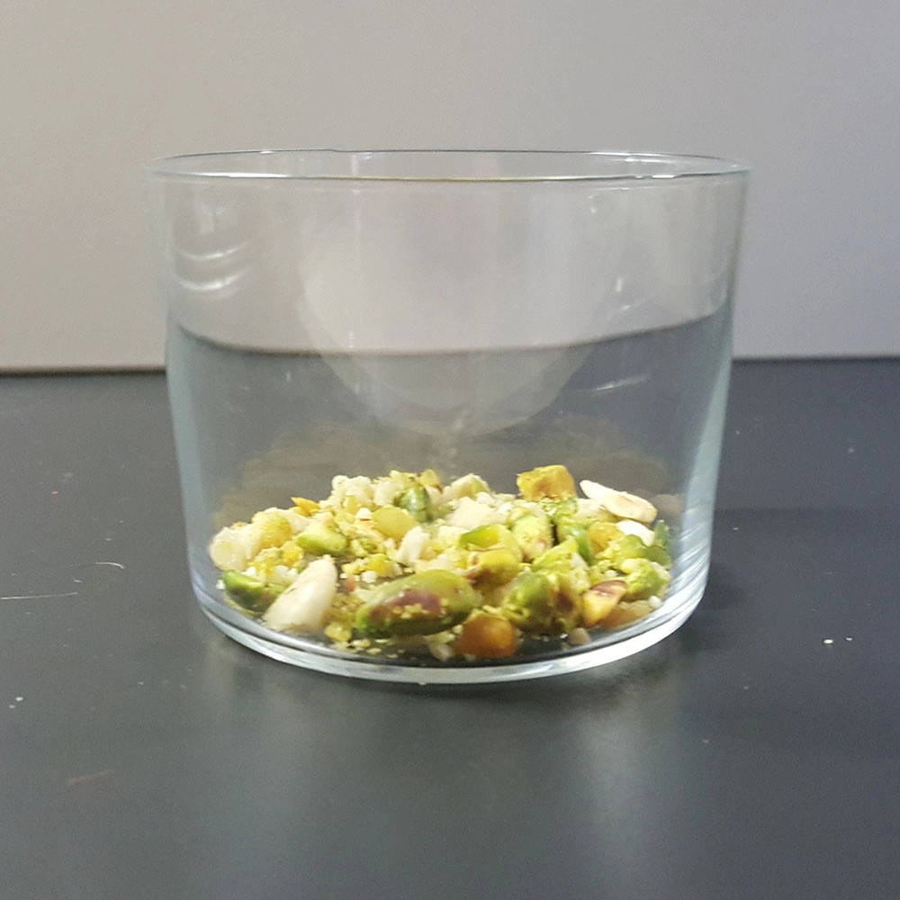 1. 1° strato: tostare le mandorle ed i pistacchi e tritarli grossolanamente.