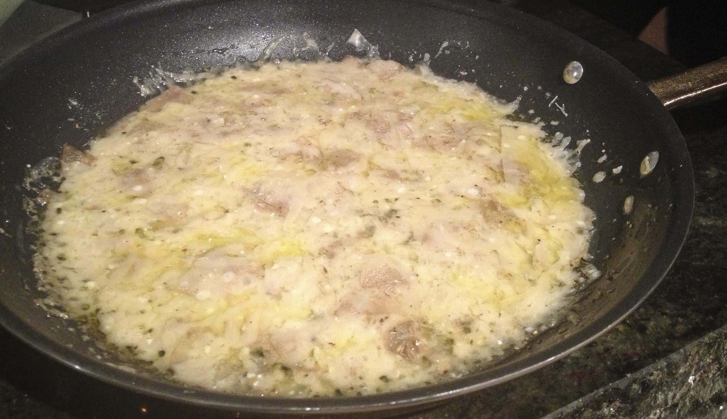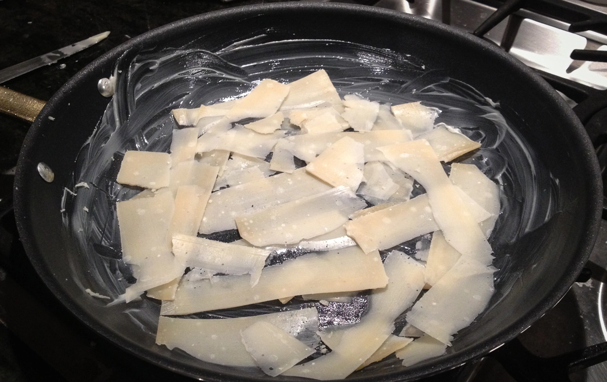 - Cuocere a fuoco medio senza mai mescolare fino a quando il grana non si sarà sciolto totalmente