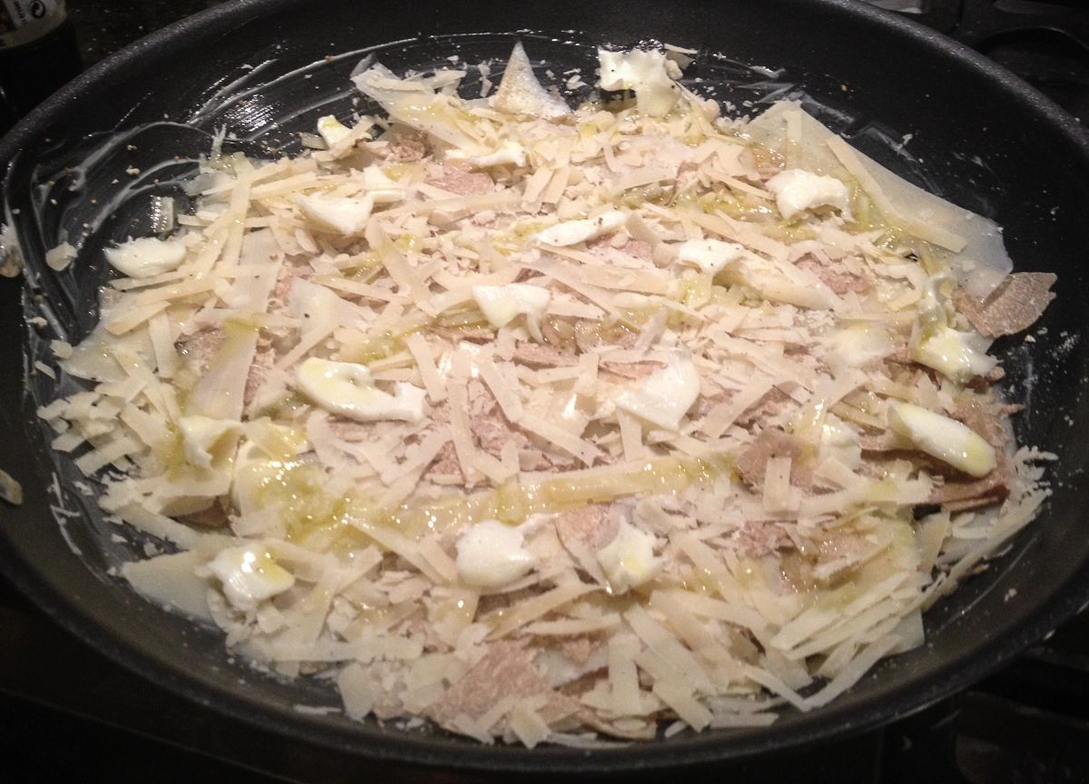 - Continuare ad alternare strati di grana e tartufo e burro a piacimento (o disponibilità...)